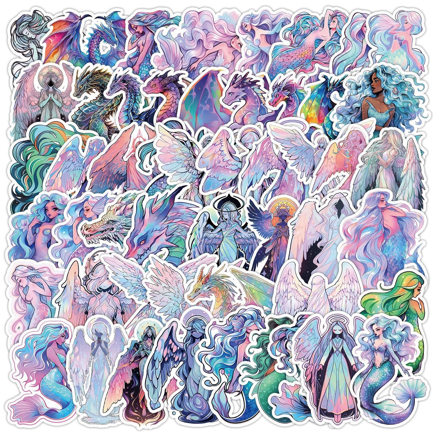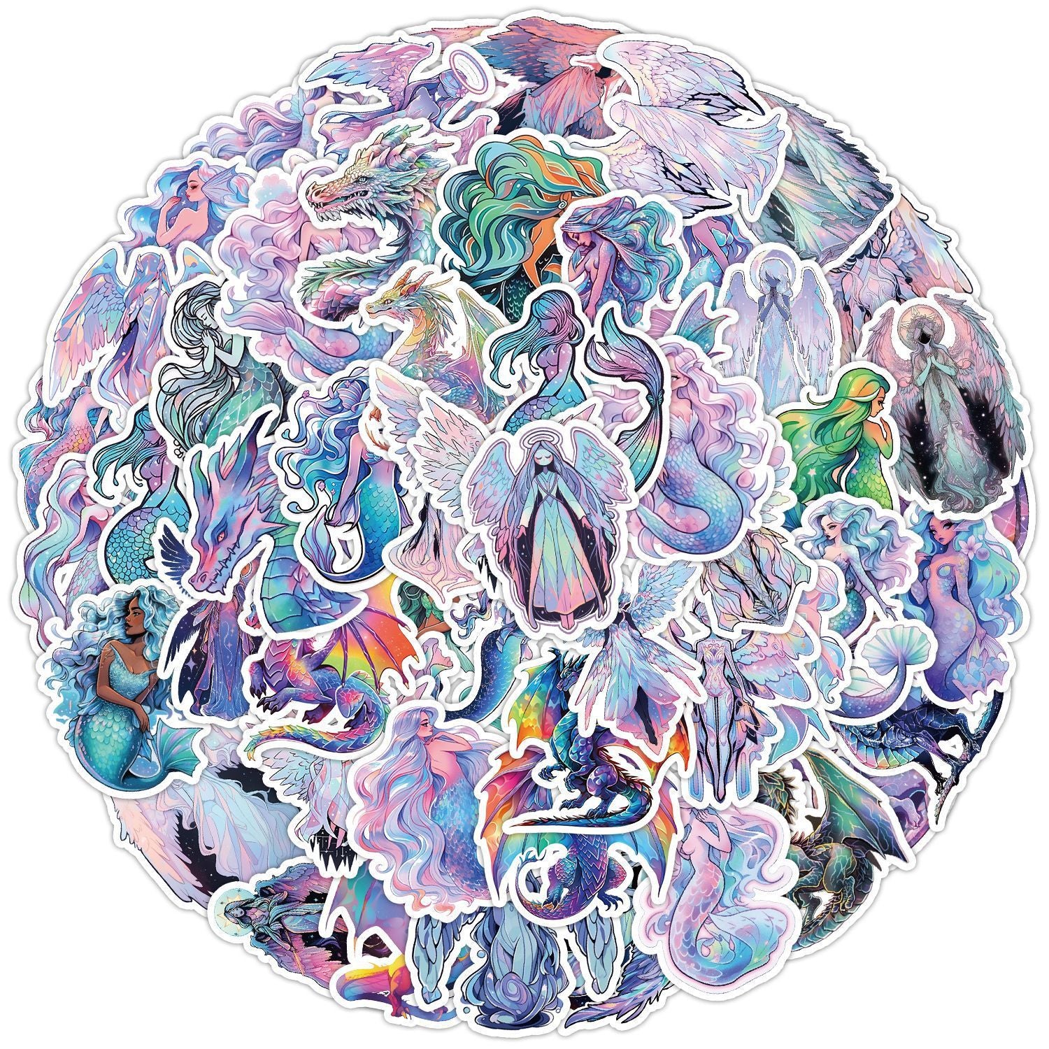 Illuminate your belongings with our 50 Sheets Angel Mermaid Holographic Graffiti Stickers. Each sticker shines with an enchanting holographic finish, featuring dreamy angel and mermaid designs that add magic to any surface. Crafted from waterproof and durable material, they are perfect for decorating water cups, luggage cases, journals, or laptops. The strong adhesive ensures they stay put while remaining easy to remove without residue. Ideal for creative journaling, DIY crafts, and personalized décor projects. Bring a touch of fantasy and elegance to your everyday accessories.