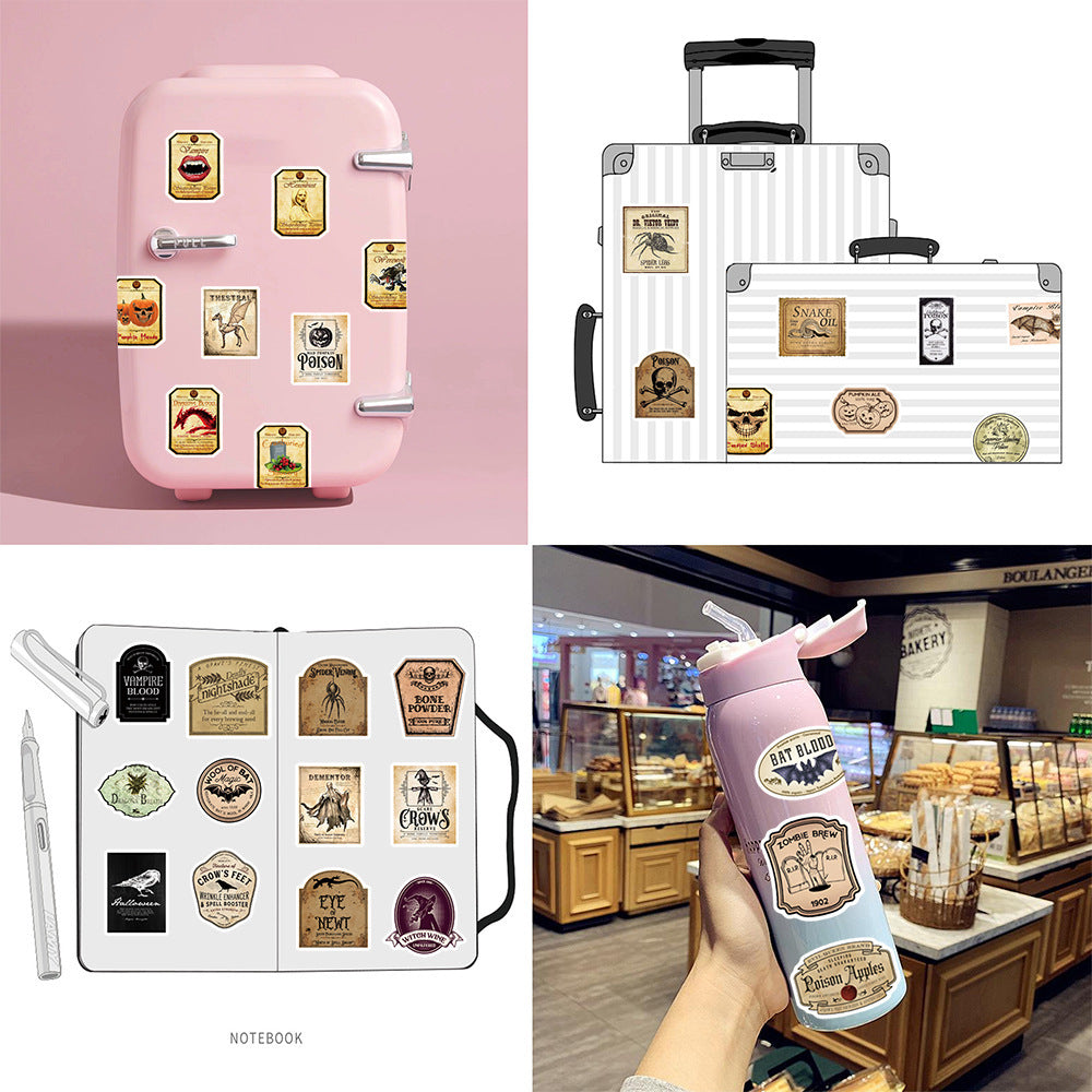 50 Vintage Halloween Bottles With Graffiti Stickers